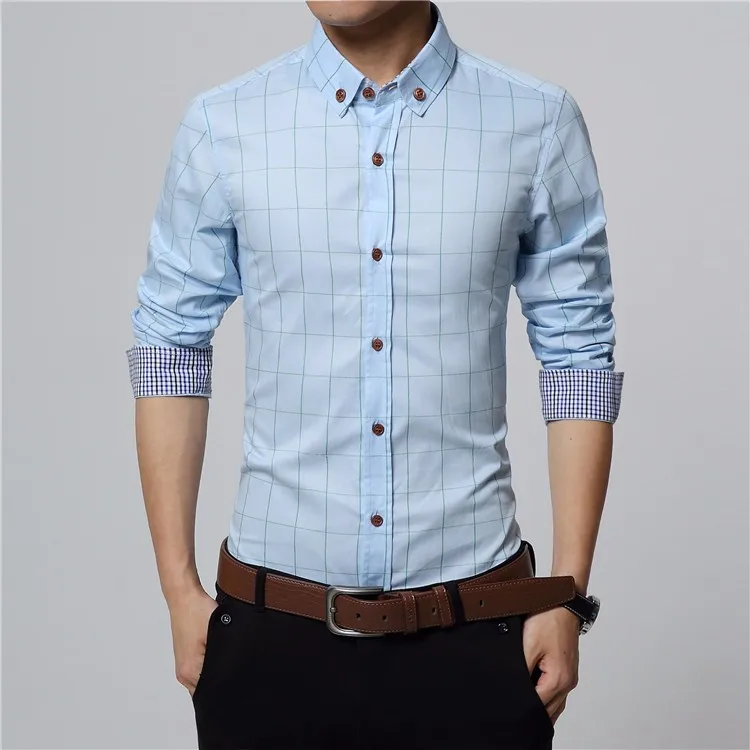 Men Plaid Cotton Dress Shirt Male High Quality Long Sleeve Slim Fit Business Casual Shirt Plus Size 5XL